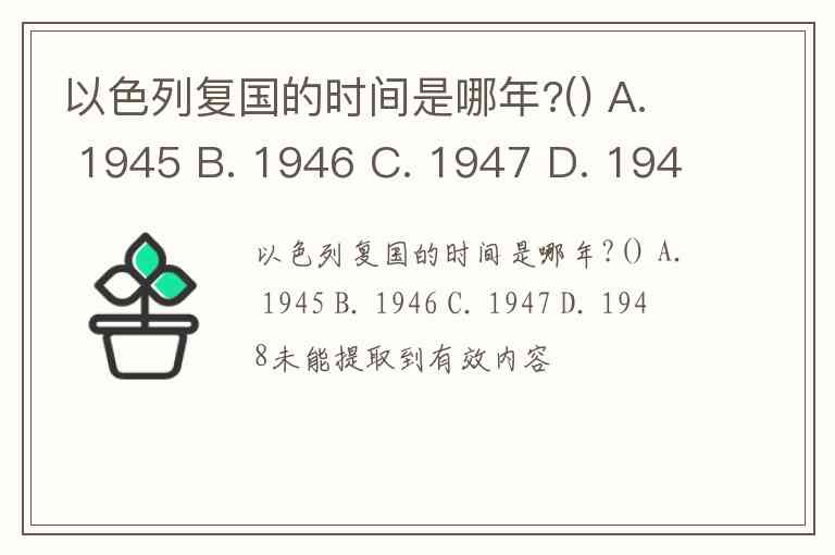以色列复国的时间是哪年?() A. 1945 B. 1946 C. 1947 D. 1948