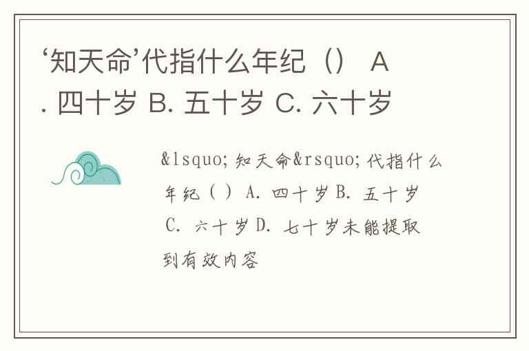 ‘知天命’代指什么年纪() A. 四十岁 B. 五十岁 C. 六十岁 D. 七十岁
