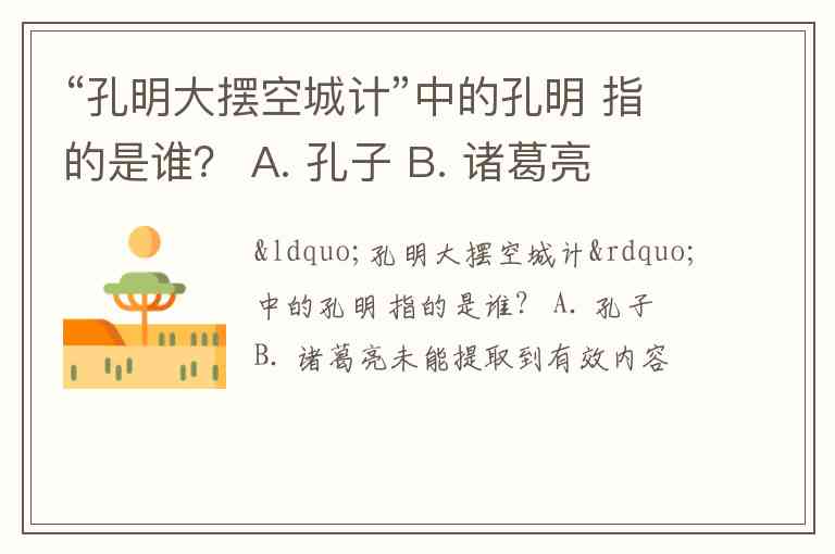 “孔明大摆空城计”中的“孔明”指的是 B. 诸葛亮。为了帮你更清晰地理解,下面这个表格梳理了关键信息。