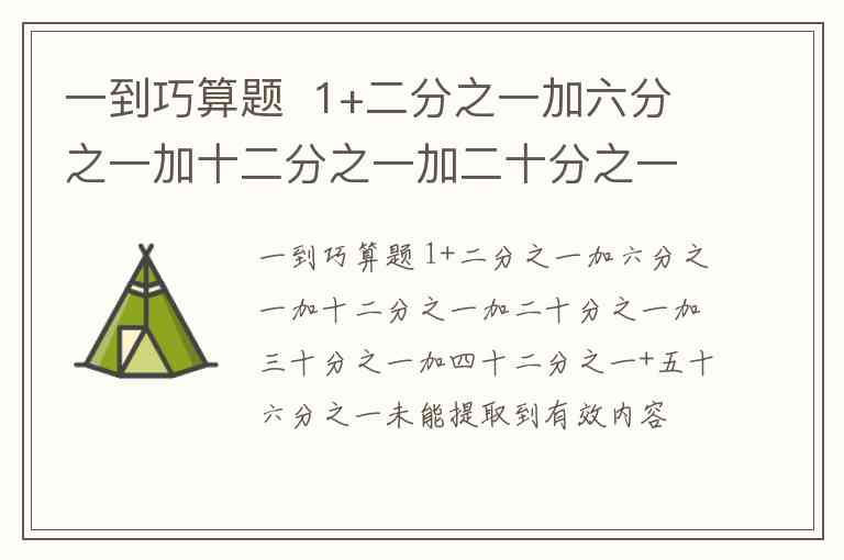 一到巧算题 1+二分之一加六分之一加十二分之一加二十分之一加三十分之一加四十二分之一+五十六分之一