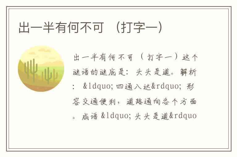 这个谜语的巧妙之处在于对“出”字和“何”字的拆分与取舍。