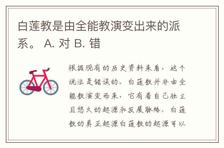 根据现有的历史资料来看,这个说法是错误的。白莲教并非由全能教演变而来,它有着自己独立且悠久的起源和发展脉络。