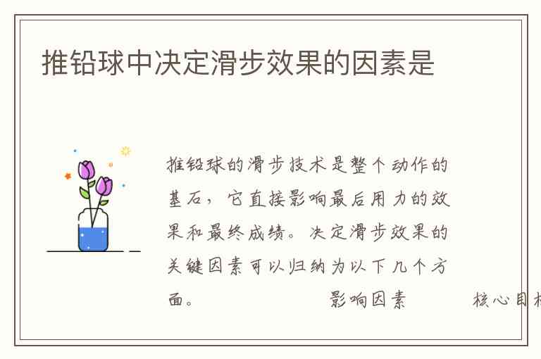 推铅球的滑步技术是整个动作的基石,它直接影响最后用力的效果和最终成绩。决定滑步效果的关键因素可以归纳为以下几个方面。