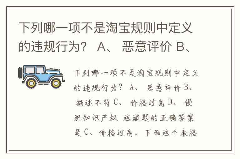 简单来说,判断的关键在于:淘宝规则约束的是那些破坏交易公平、欺骗消费者或损害他人权益的行为(如A、B、D选项)。而 “价格过高”属于市场定价策略,只要明码标价、没有其他欺诈行为,本身并不违反平台规则。
