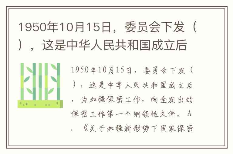| A. 《关于加强新形势下国家保密管理工作的决定》 | 错误 | 这是关于新形势下保密工作的文件,并非1950年发布的第一个纲领性文件。 |