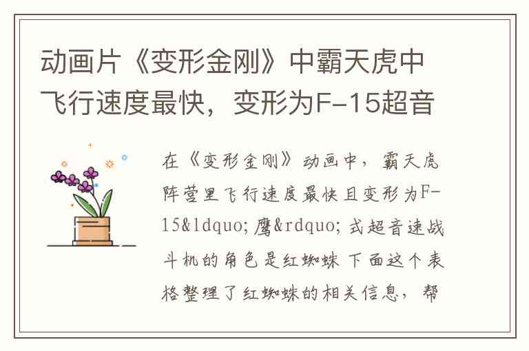 在《变形金刚》动画中,霸天虎阵营里飞行速度最快且变形为F-15“鹰”式超音速战斗机的角色是红蜘蛛