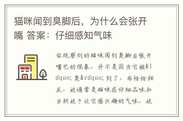 你观察到的猫咪闻到臭脚后张开嘴巴的现象,并不是因为它被“臭”到了,而恰恰相反,这通常是猫咪在仔细品味和分析这个让它感兴趣的气味。这个行为有一个专业的名称——裂唇嗅反应(Flehmen Response),有时也被称为“佛勒门反应”。