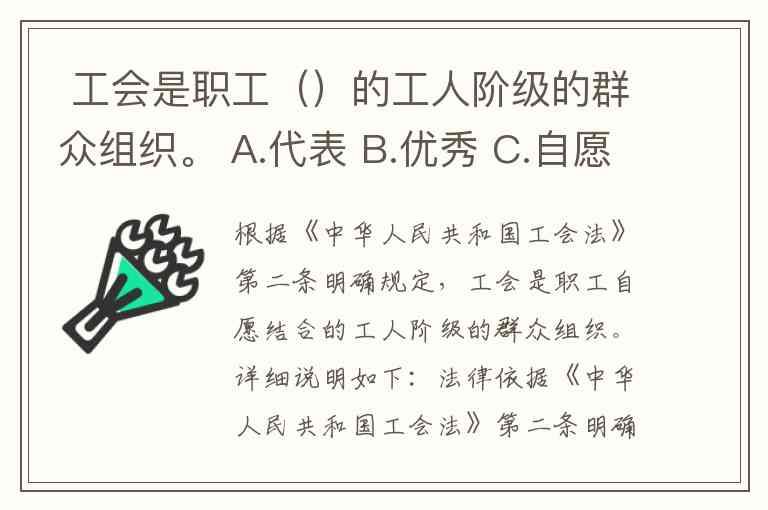 根据《中华人民共和国工会法》第二条明确规定,工会是职工自愿结合的工人阶级的群众组织。