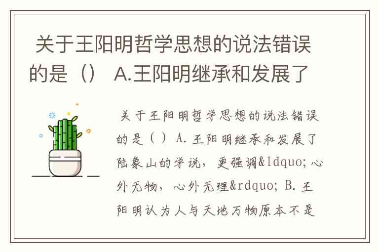 因此 B 项的说法与王阳明的本意相反,是错误的。