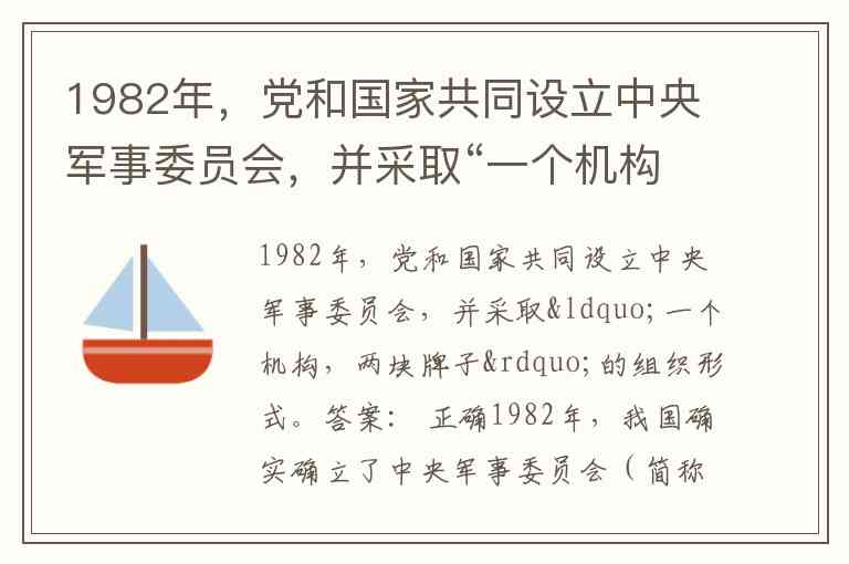 1982年,我国确实确立了中央军事委员会(简称“中央军委”)由党和国家共同设立,并采用“一个机构,两块牌子”的组织形式。具体来看: