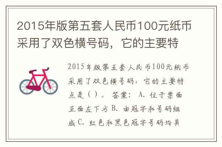 2015年版第五套人民币100元纸币采用的双色横号码是其重要的防伪特征之一。它的主要特点包括: