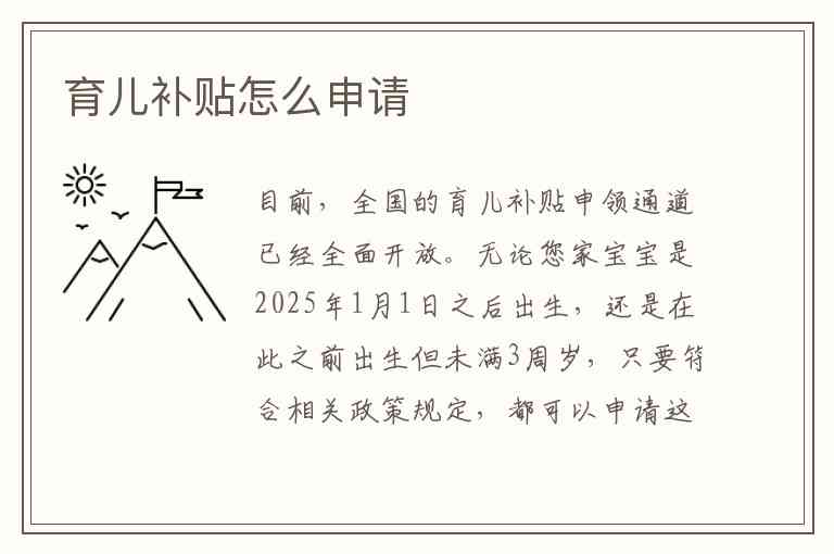 下面为您梳理了申请育儿补贴的详细指南。