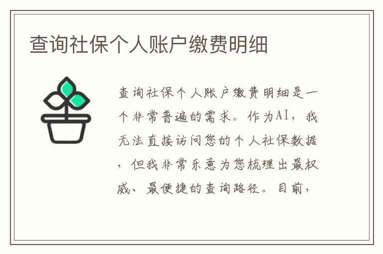 查询社保个人账户缴费明细是一个非常普遍的需求。作为AI,我无法直接访问您的个人社保数据,但我非常乐意为您梳理出最权威、最便捷的查询路径。
