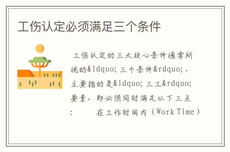 通常所说的“三个条件”,主要指的是“三工”要素,即必须同时满足以下三点: