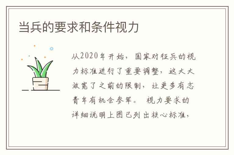 从2020年开始,国家对征兵的视力标准进行了重要调整,这大大放宽了之前的限制,让更多有志青年有机会参军。