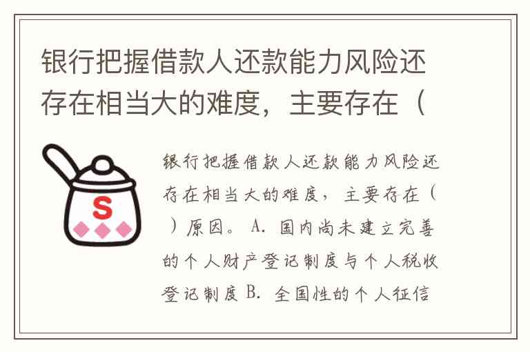 题目问的是:银行在把握借款人还款能力时仍存在相当大难度的原因。我们需要分析哪些因素直接影响银行判断借款人还款能力的准确性。