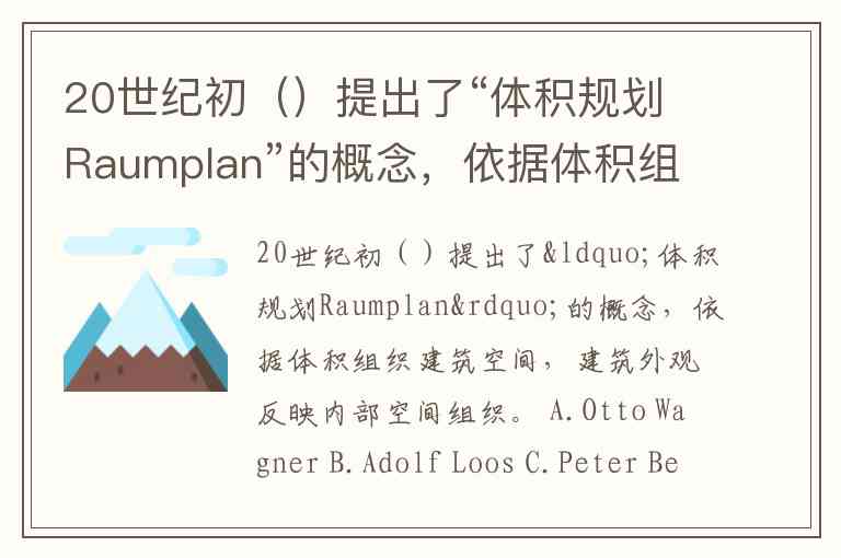 A. Otto Wagner现代建筑先驱,倡导新材料和新结构的运用,代表作有维也纳邮政储蓄银行。虽为现代主义重要人物,但其思想核心并非“体积规划”。