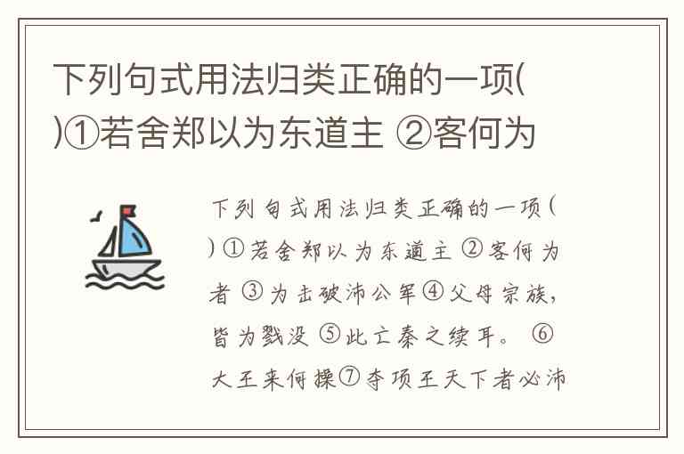 好的,我们仔细分析一下这个题目。题目考查的是**“句式用法归类”**,需要根据古文中句式特点来分类。下面逐条分析。
