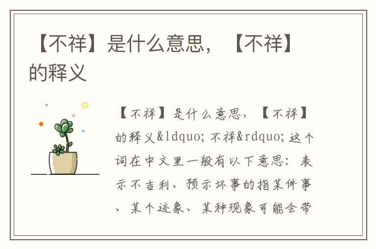 “不祥”这个词在中文里一般有以下意思: