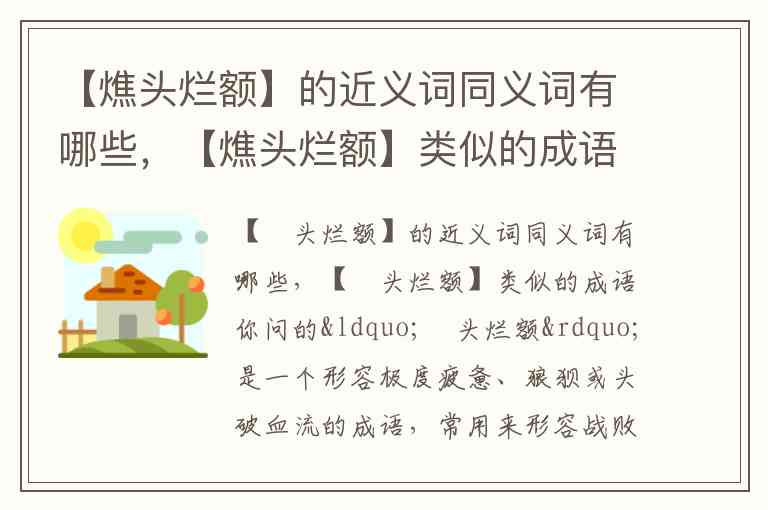 你问的“燋头烂额”是一个形容极度疲惫、狼狈或头破血流的成语,常用来形容战败或受重创的状态。下面我给你整理一下近义词 / 同义词以及类似成语: