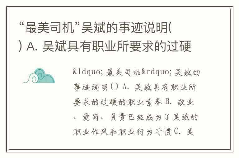 这道题考查的是对“最美司机”吴斌事迹的理解以及对职业素养体现的分析。我们可以逐项分析选项: