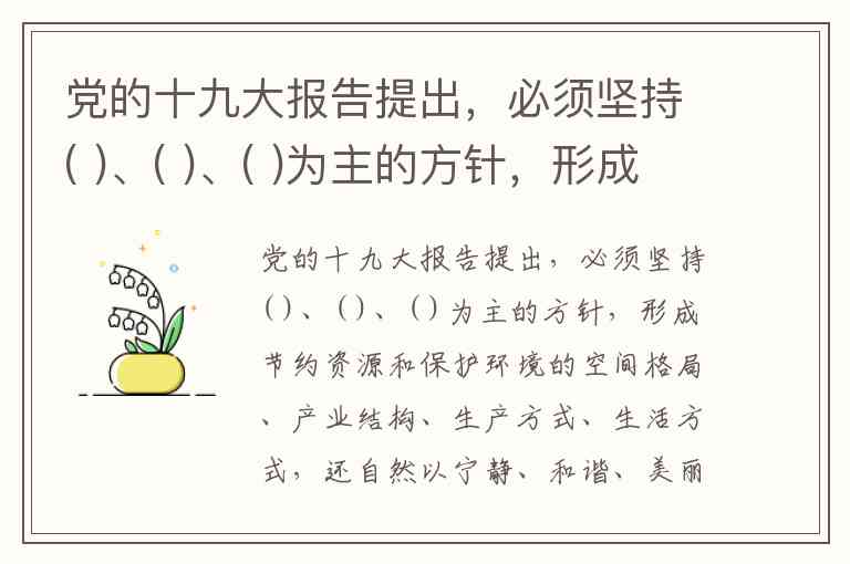 党的十九大报告提出,必须坚持( )、( )、( )为主的方针,形成节约资源和保护环境的空间格局、产业结构、生产方式、生活方式,还自然以宁静、和谐、美丽。 国。 A. 保护优先 B. 自然恢复 C. 事先预防 D. 节约优先