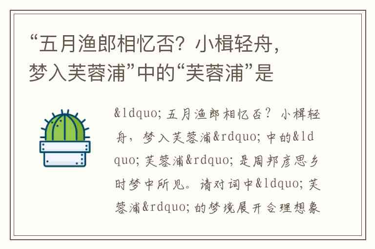 “五月渔郎相忆否?小楫轻舟,梦入芙蓉浦”中的“芙蓉浦”是周邦彦思乡时梦中所见。请对词中“芙蓉浦”的梦境展开合理想象,进行生动描写,表达词人的思乡之情。(80字以内) ___________________________________________________________