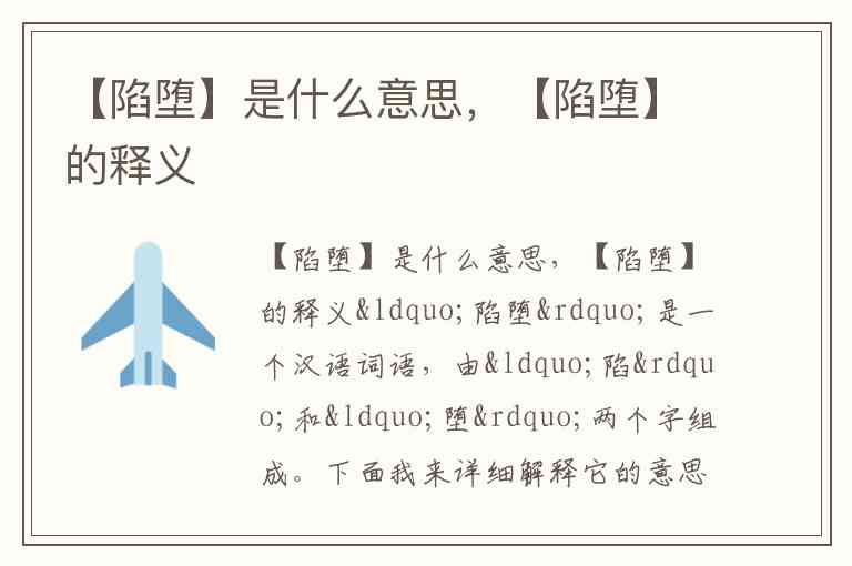 合起来,“陷堕”有“掉入(不好的境地或状态)、堕落”的意思。