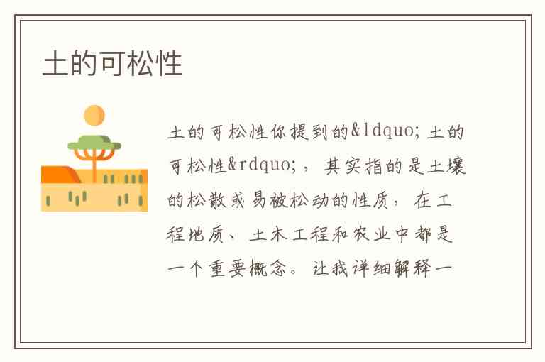 你提到的“土的可松性”,其实指的是土壤的松散或易被松动的性质,在工程地质、土木工程和农业中都是一个重要概念。让我详细解释一下: