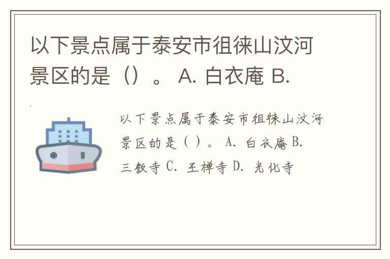 以下景点属于泰安市徂徕山汶河景区的是()。 A. 白衣庵 B. 三教寺 C. 王禅寺 D. 光化寺