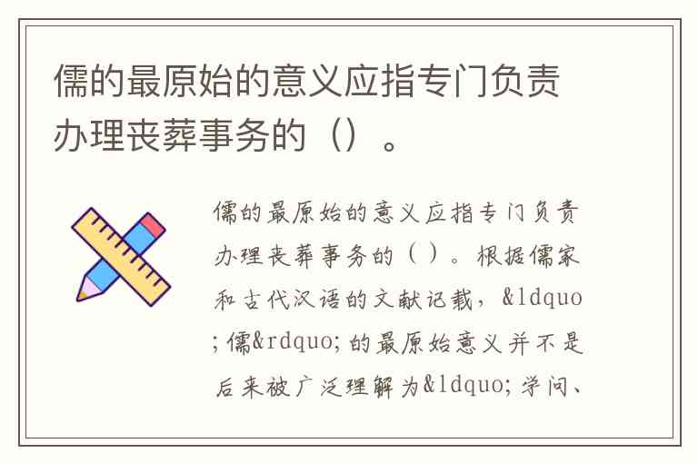 根据儒家和古代汉语的文献记载,“儒”的最原始意义并不是后来被广泛理解为“学问、仁德”的意思,而是指专门负责办理丧葬事务的人员。
