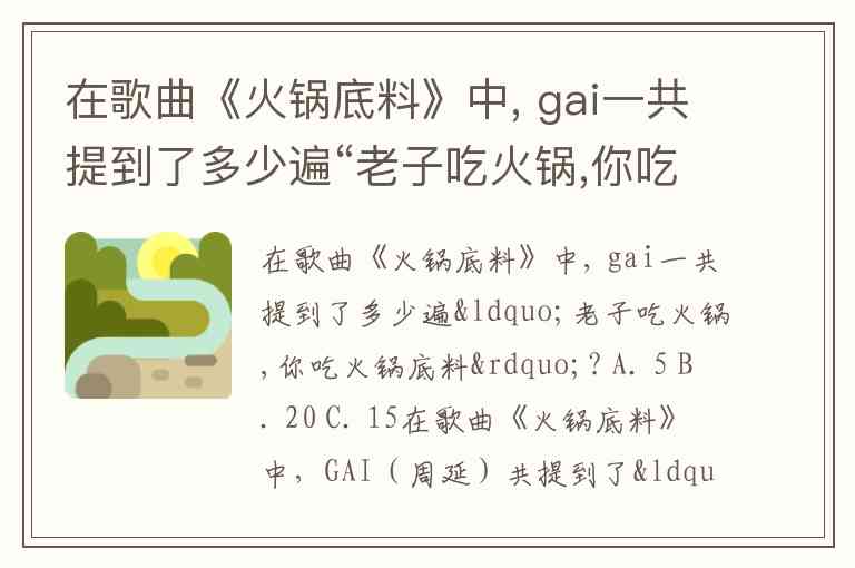 在歌曲《火锅底料》中, gai一共提到了多少遍“老子吃火锅,你吃火锅底料”? A. 5 B. 20 C. 15