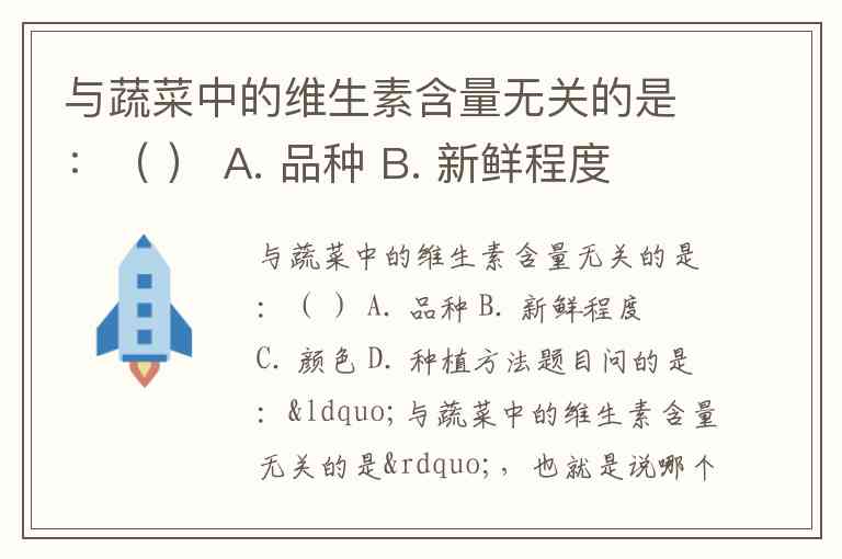 与蔬菜中的维生素含量无关的是:( ) A. 品种 B. 新鲜程度 C. 颜色 D. 种植方法