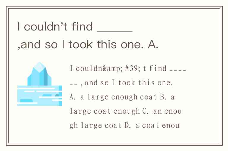 I couldn't find ______ ,and so I took this one. A. a large enough coat B. a large coat enough C. an enough large coat D. a coat enough large