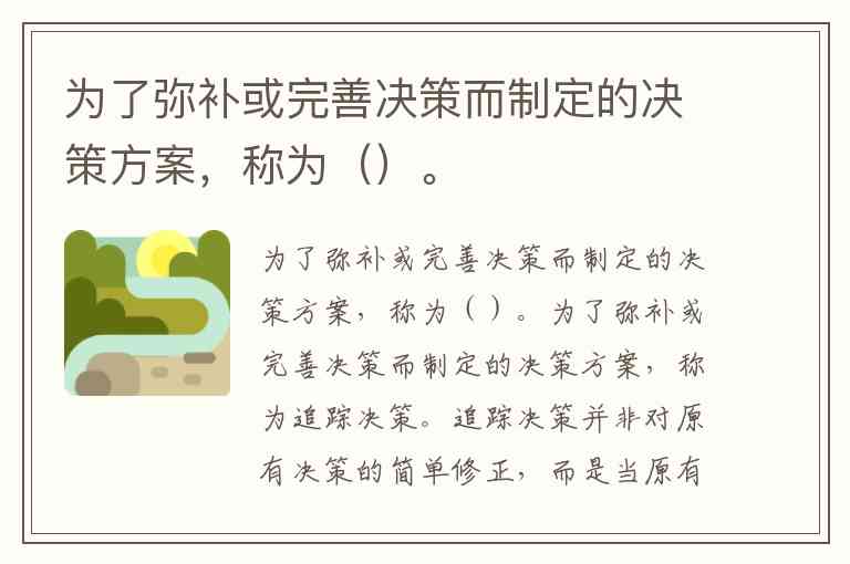 为了弥补或完善决策而制定的决策方案,称为()。