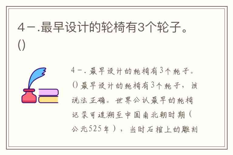 4-.最早设计的轮椅有3个轮子。()
