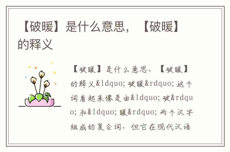 为了更精确地解释,我需要知道你看到“破暖”的上下文或出处,这样可以判断它是口语、网络用语,还是古文或方言。