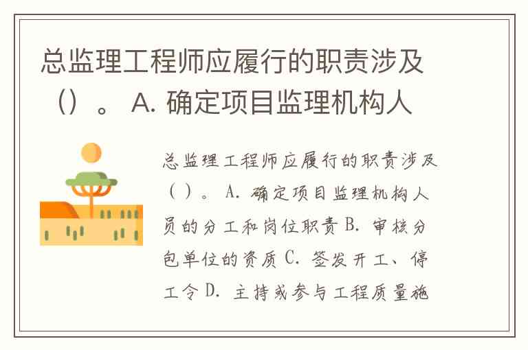 总监理工程师的职责较为广泛,涵盖了项目全过程的监督与管理。