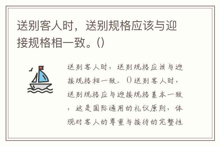 送别客人时,送别规格应与迎接规格基本一致,这是国际通用的礼仪原则,体现对客人的尊重与接待的完整性。