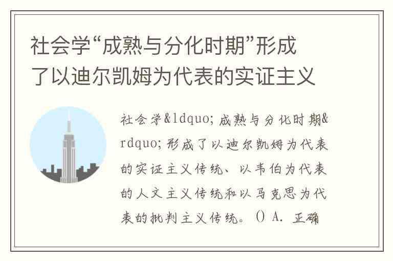 社会学“成熟与分化时期”形成了以迪尔凯姆为代表的实证主义传统、以韦伯为代表的人文主义传统和以马克思为代表的批判主义传统。() A. 正确 B. 错误