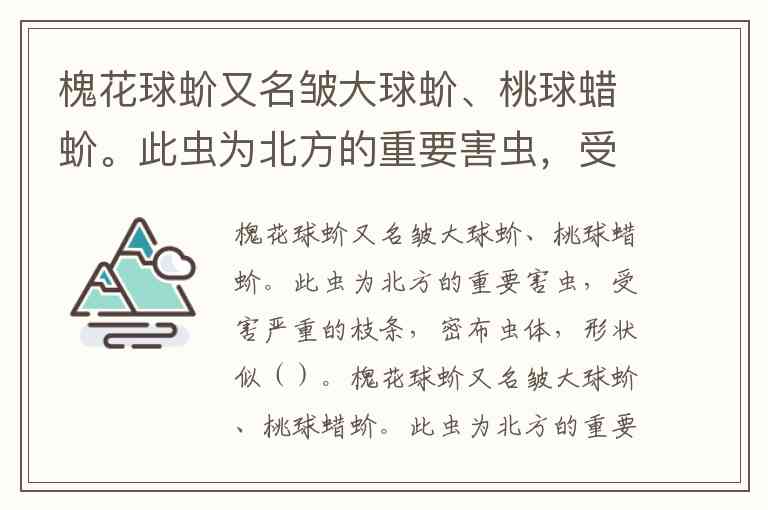 槐花球蚧又名皱大球蚧、桃球蜡蚧。此虫为北方的重要害虫,受害严重的枝条,密布虫体,形状似糖葫芦。