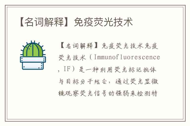 免疫荧光技术(Immunofluorescence, IF)是一种利用荧光标记抗体与目标分子结合,通过荧光显微镜观察荧光信号的强弱来检测特定抗原或分子分布的实验技术。它结合了免疫学与荧光显微镜的优势,广泛用于细胞生物学、病理学和分子生物学等领域。