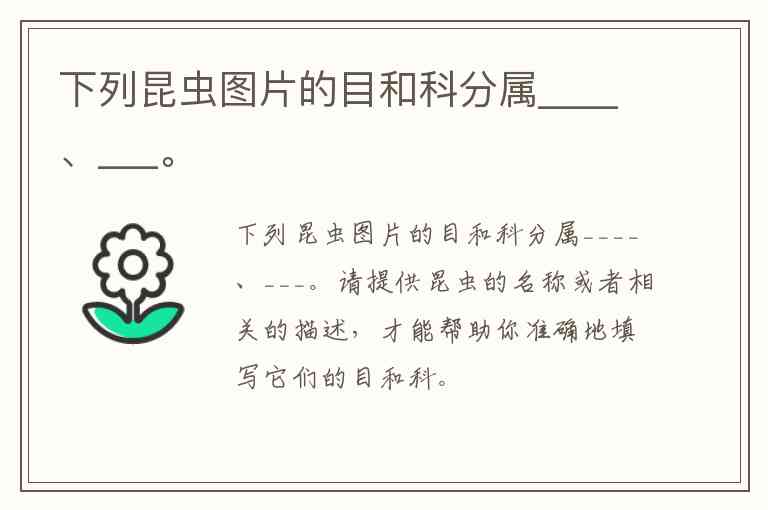 请提供昆虫的名称或者相关的描述,才能帮助你准确地填写它们的目和科。