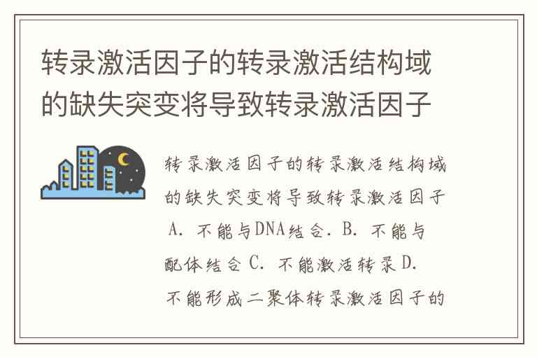 转录激活因子的转录激活结构域的缺失突变将导致转录激活因子 A. 不能与DNA结合. B. 不能与配体结合 C. 不能激活转录 D. 不能形成二聚体