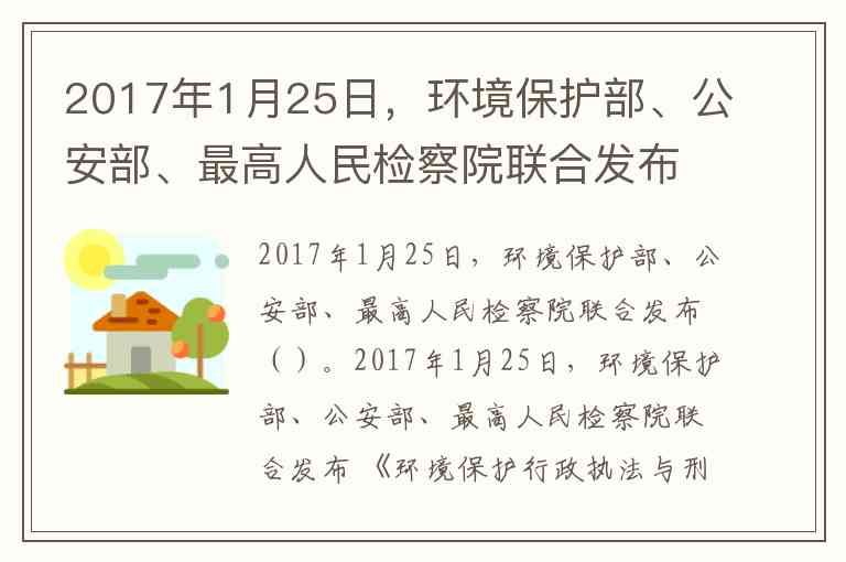 2017年1月25日,环境保护部、公安部、最高人民检察院联合发布()。