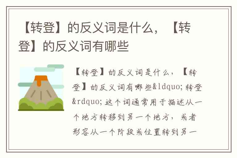 【转登】的反义词是什么,【转登】的反义词有哪些