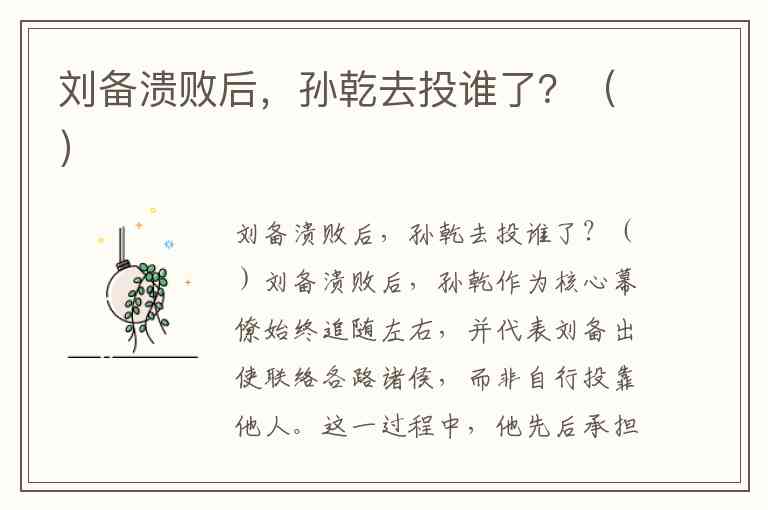 若从题目选项(袁尚、刘表、刘辟、孙策)中选择,最接近史实的关联项是刘表——孙乾作为刘备使臣成功促成投奔刘表,但其本质是“代表刘备联络”而非“个人投靠”。这种“奉命出使”与“自行投靠”的区别,恰是理解孙乾角色的关键。