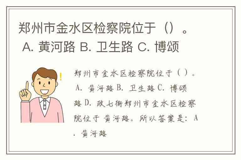 郑州市金水区检察院位于()。 A. 黄河路 B. 卫生路 C. 博颂路 D. 政七街