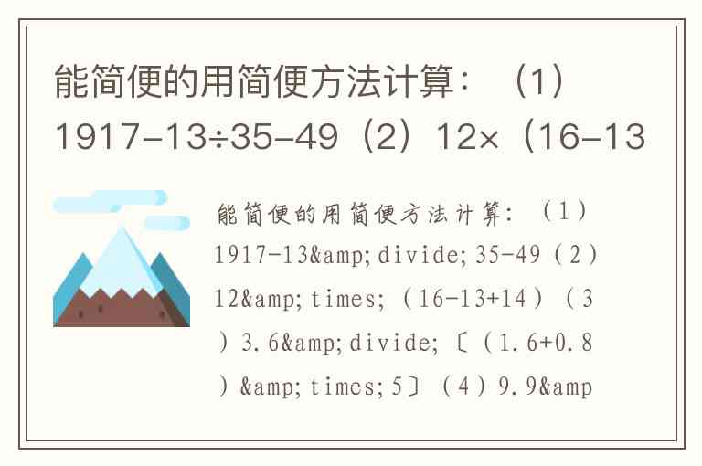 能简便的用简便方法计算:(1)1917-13÷35-49(2)12×(16-13+14)(3)3.6÷〔(1.6+0.8)×5〕(4)9.9×18+81×9.9+9.9.