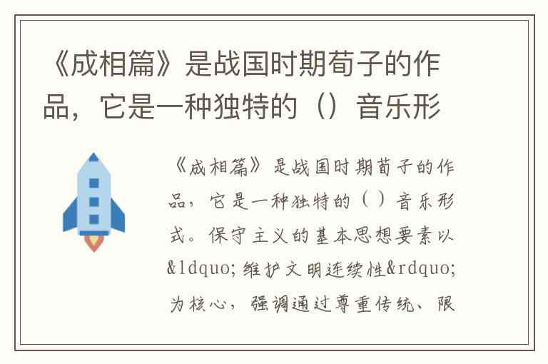 《荀子·成相篇》是春秋战国时期的思想家荀子所创作的一篇通俗的唱词,它是我国最早的说唱音乐形式。